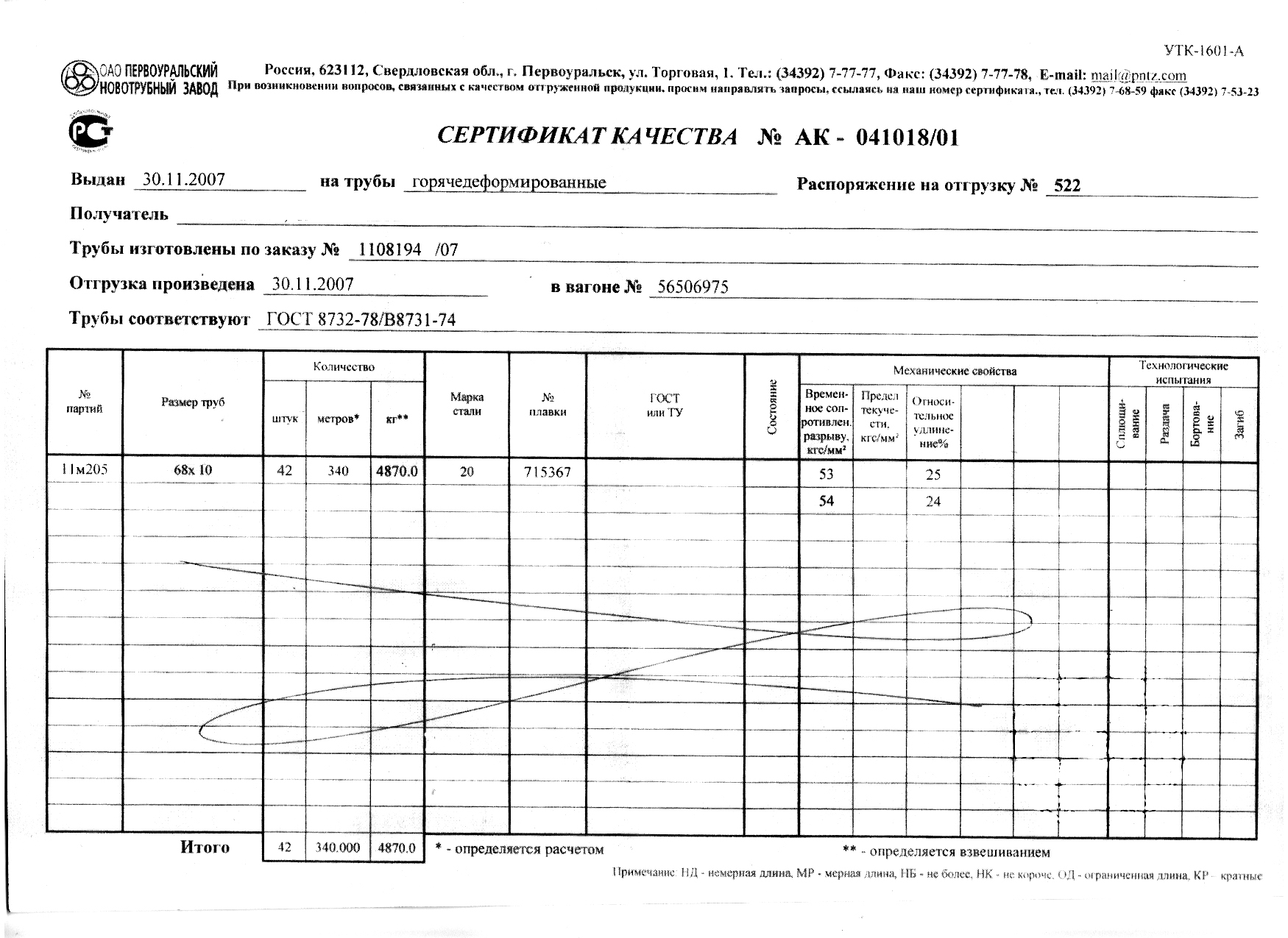 С каждой товарной позицией мы предоставляем все сертификаты и паспорта качества, а также товарно-транспортную накладную.