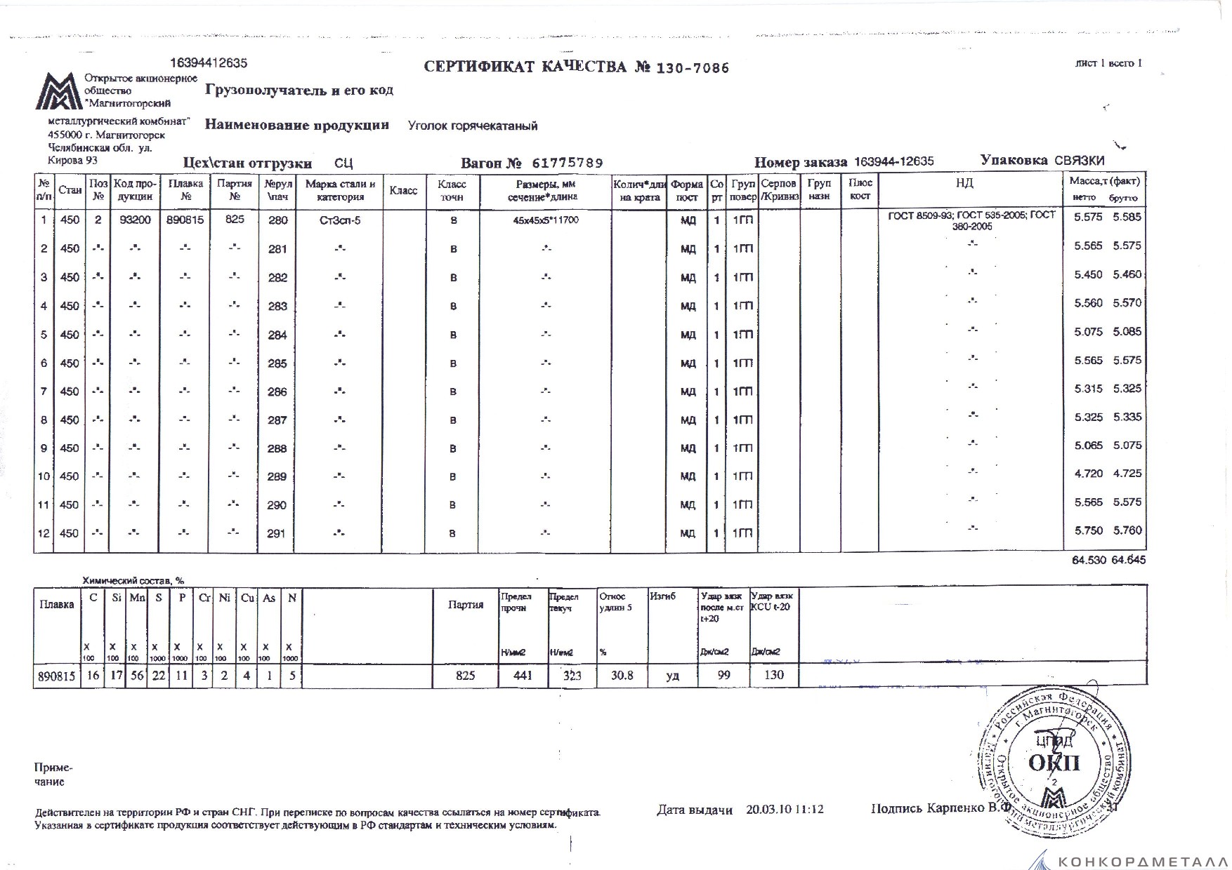 С каждой товарной позицией мы предоставляем все сертификаты и паспорта качества, а также товарно-транспортную накладную.